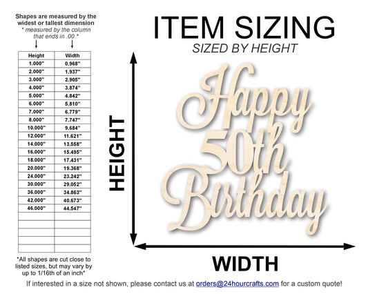 Unfinished Happy 50th Birthday Sign Shape | DIY Craft Cutout | up to 46" DIY